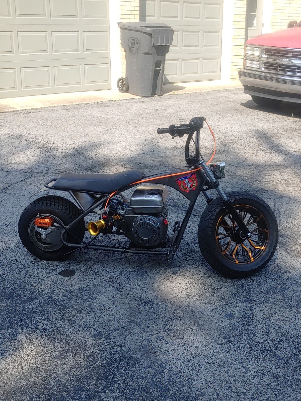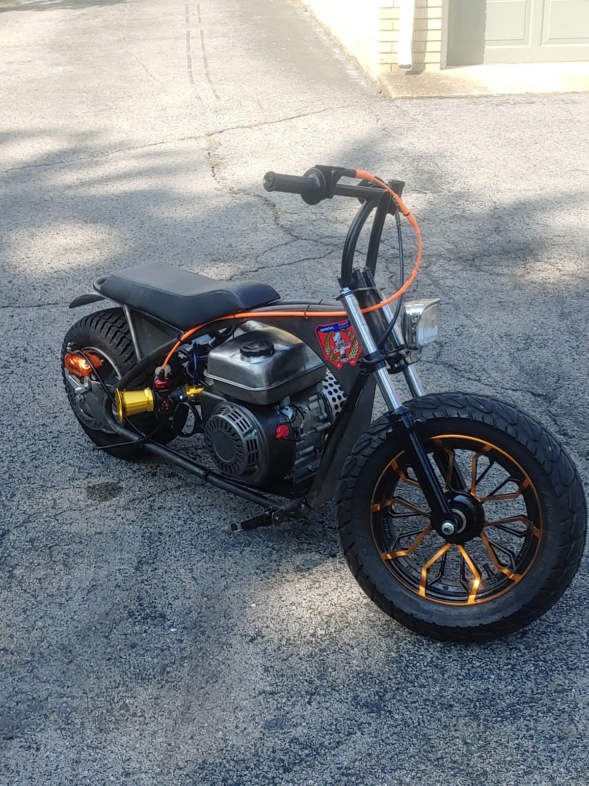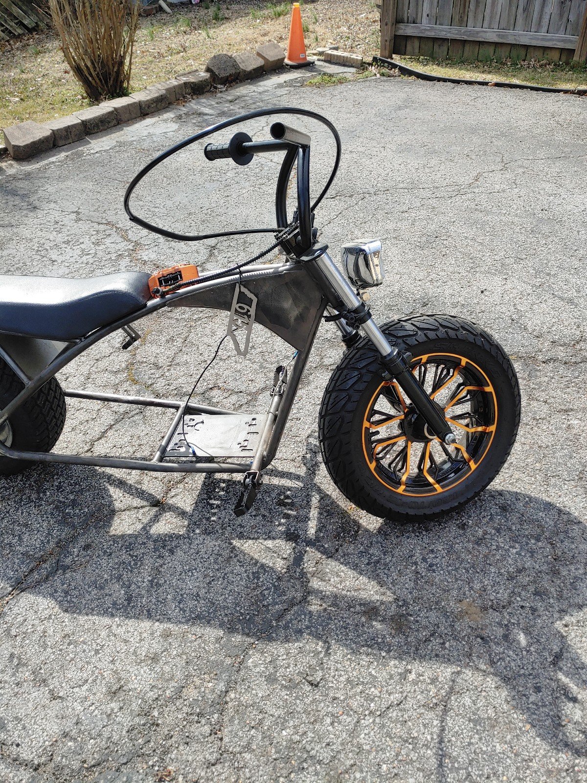 12" front rim on a new 130/70/12 tire 8" rear wheel and tire